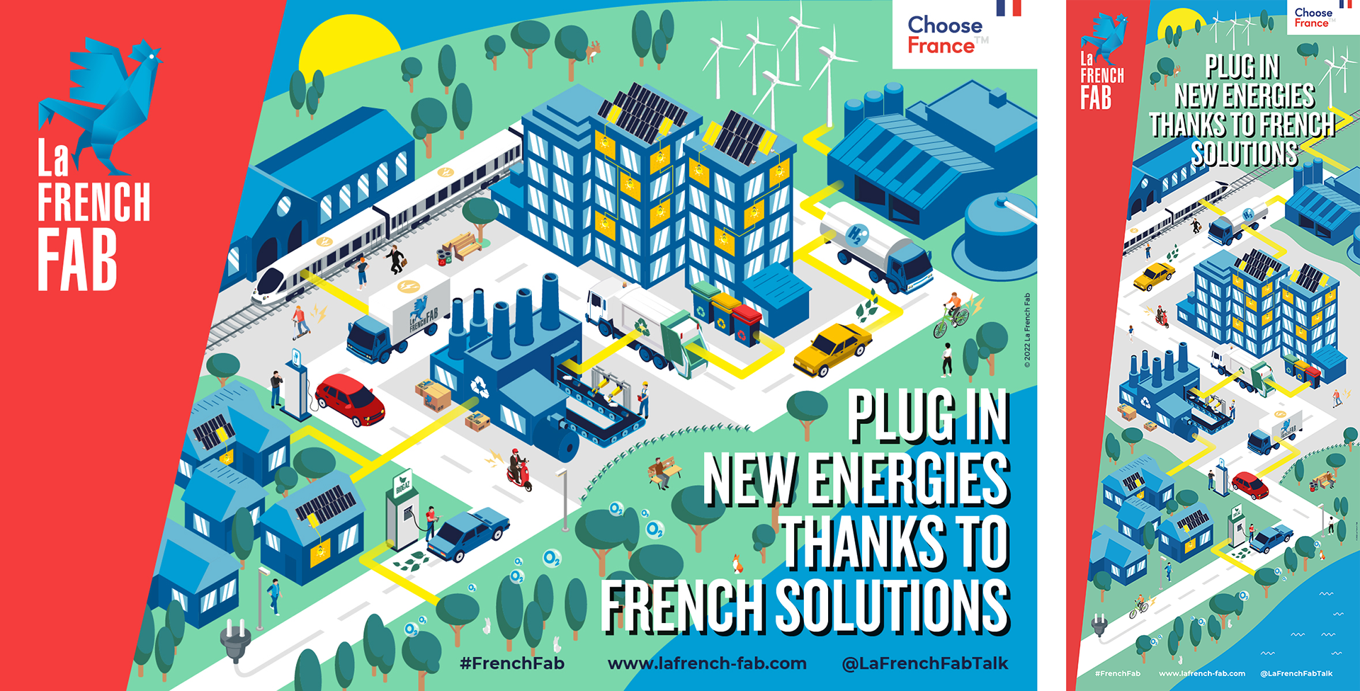 Conception, illustration et déclinaison d’une bannière sur les énergies nouvelles.