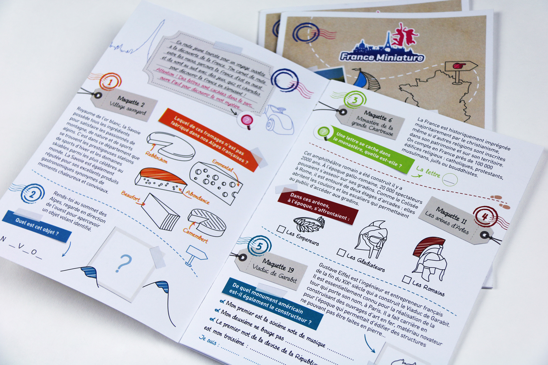 Création et illustration d'un carnet de jeux à destination des enfants qui visitent le parc France Miniature.