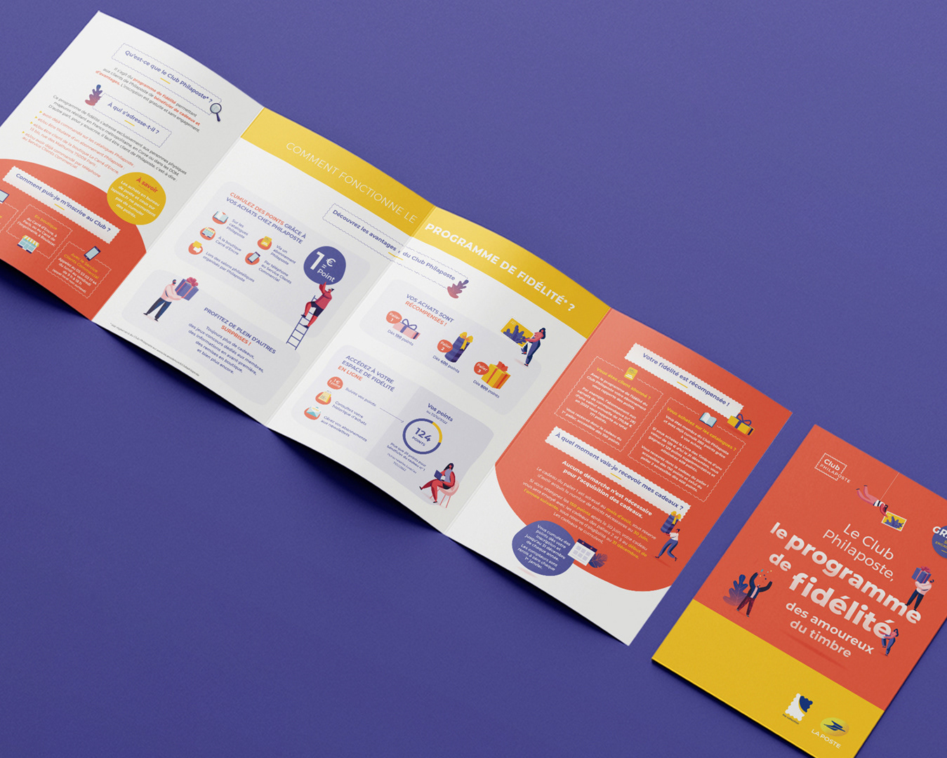 Conception et mise en page d’un dépliant destiné aux adhérents du programme de fidélité de La Poste.