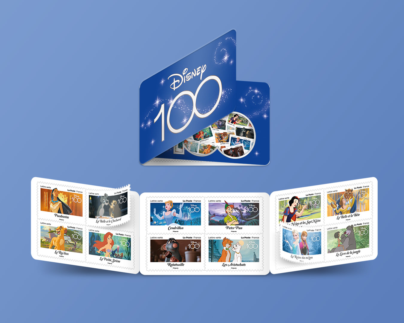 Conception de timbres pour les 100 ans de Disney.